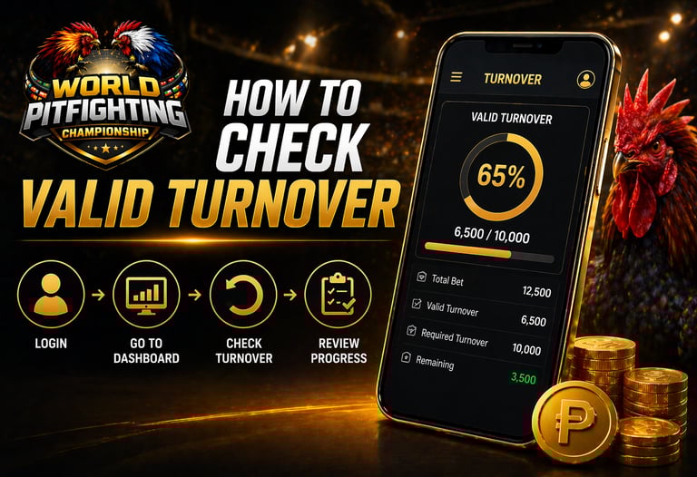 Checking your valid turnover at WORLD PITFIGHTING CHAMPIONSHIP SABONG in 2026 is a simple process that helps you stay on track with your betting activity. By monitoring your progress, you can ensure a smoother experience when claiming rewards or withdrawing funds.