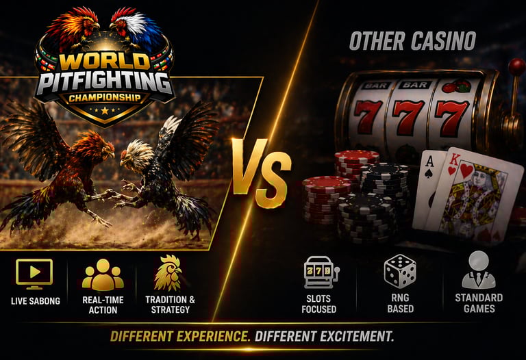WORLD PITFIGHTING CHAMPIONSHIP SABONG in 2026 offers a unique alternative to traditional online casinos. By focusing on live sabong, real-time interaction, and cultural relevance, it delivers a different kind of excitement that stands apart from standard gaming platforms.